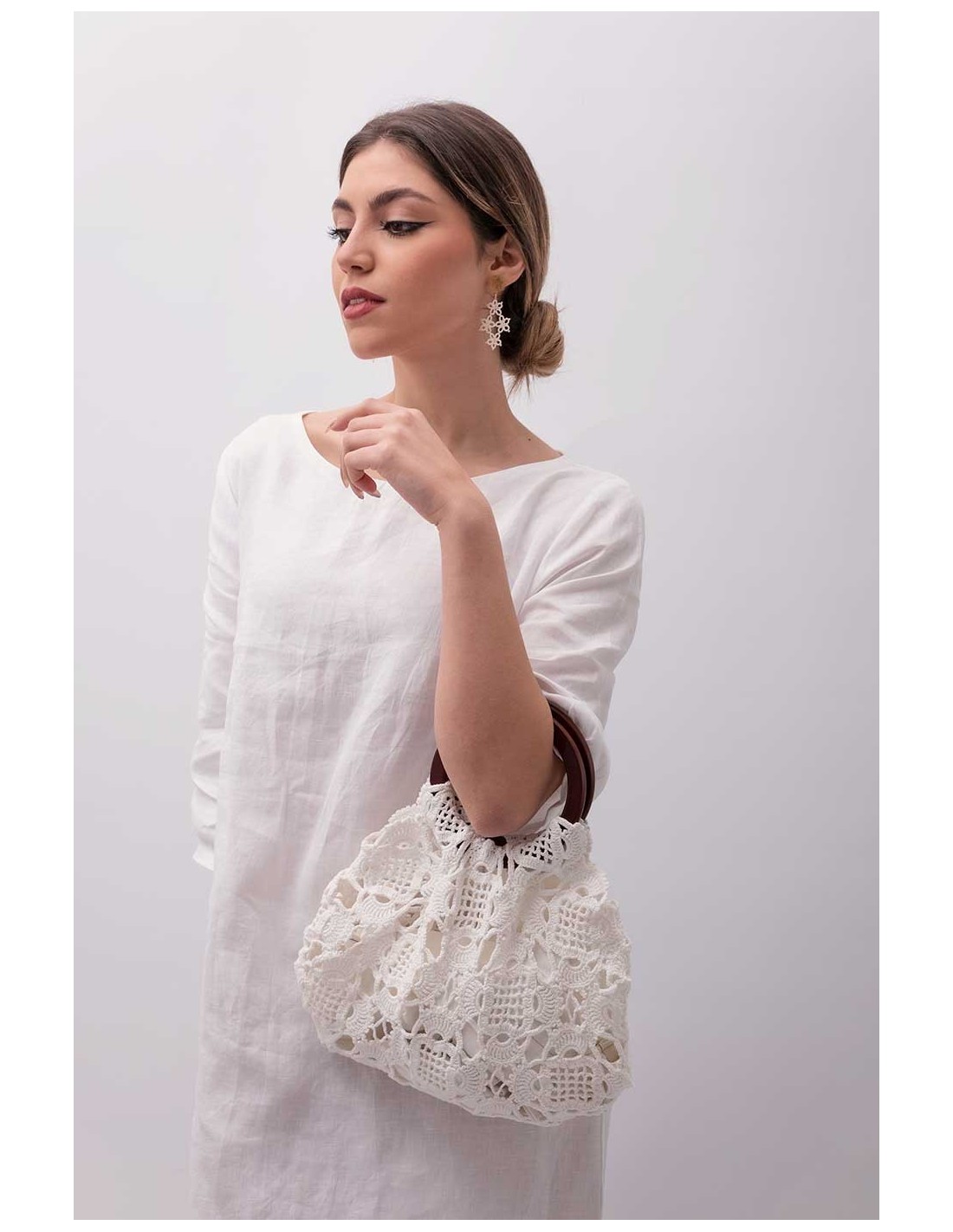 La borsa Casalini è una borsa realizzata ad uncinetto in cotone e manici in legno.