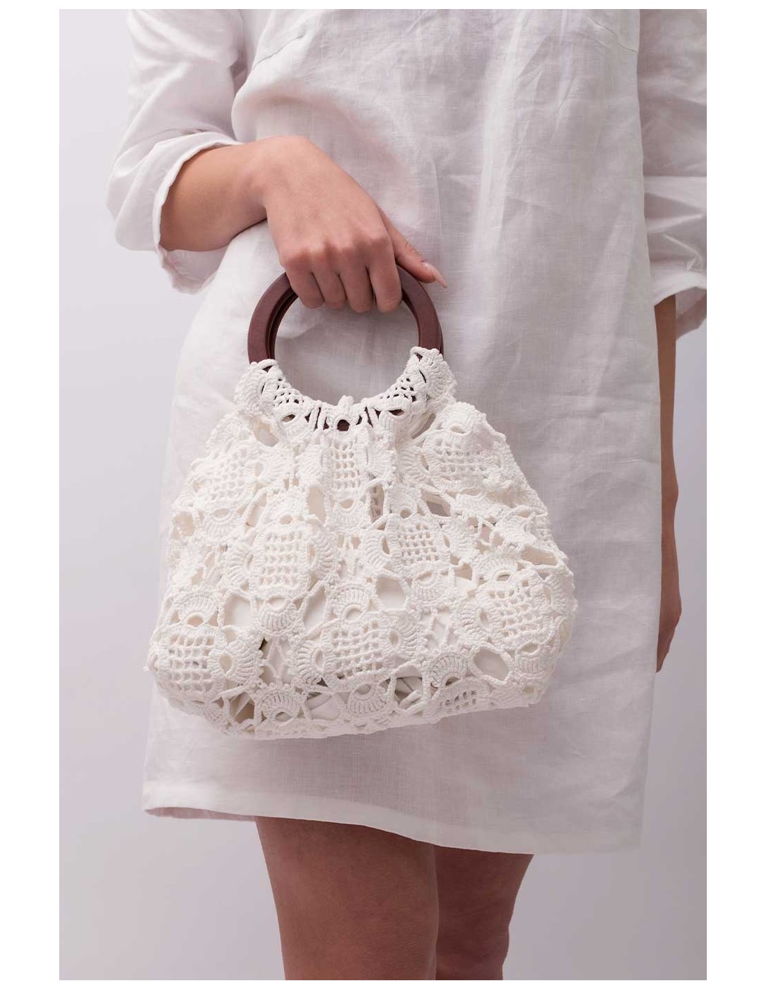 Borsa fatta a mano ad uncinetto manico in legno Casalini