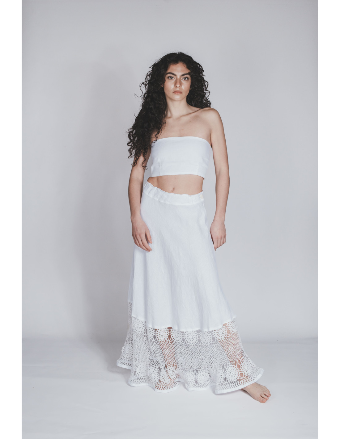 Gonna sartoriale puro lino fatta a mano ad uncinetto Ruffano