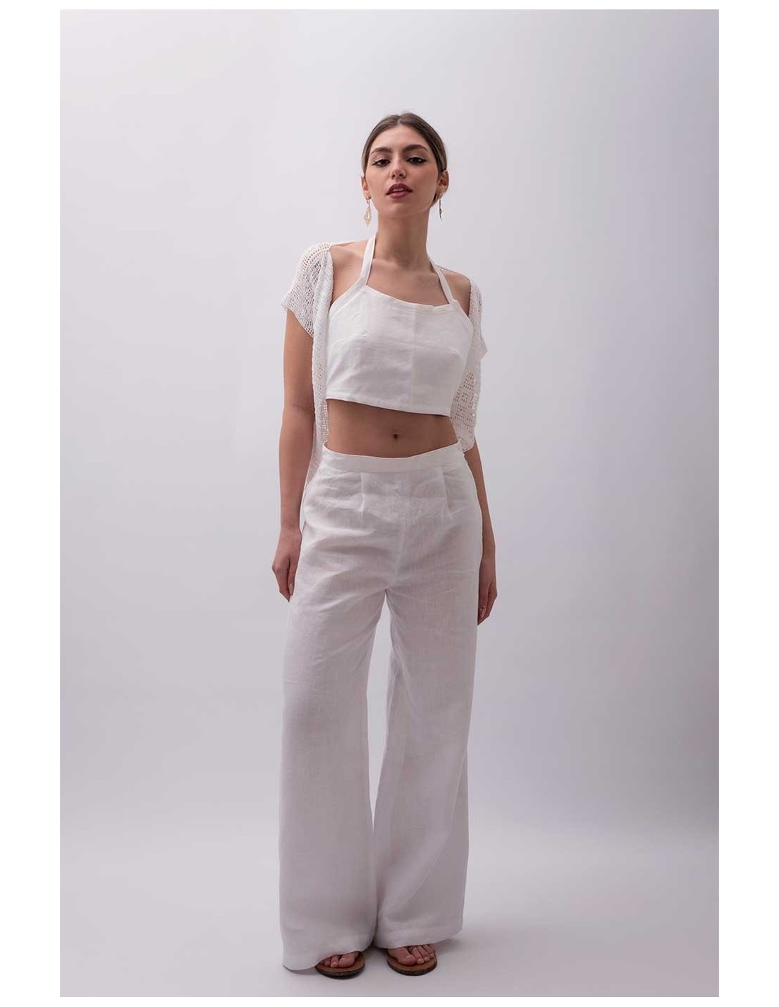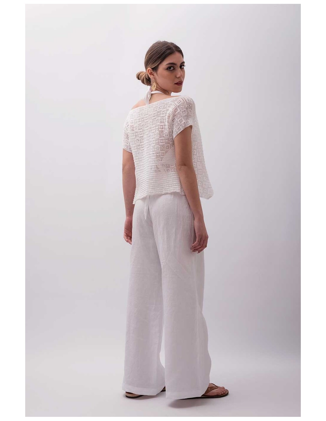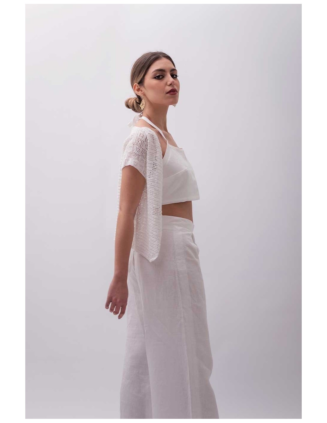 Il Gilet Specchiolla è un capo realizzato interamente a mano con la pregiata tecnica del filet all’uncinetto, utilizzando un cotone sottilissimo che conferisce morbidezza e leggerezza. Un dettaglio sartoriale che aggiunge eleganza discreta e autenticità al guardaroba estivo, perfetto per chi cerca uno stile unico e raffinato.