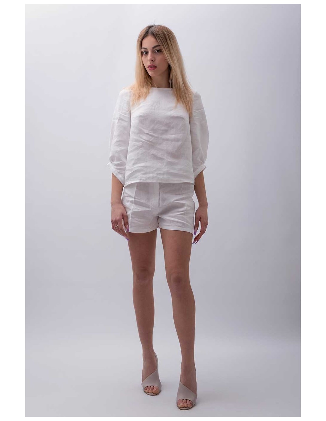 Il top Egnazia prende il nome dall’antica città sul mare, famosa per i suoi scavi archeologici e la sua storia senza tempo. Realizzato in 100% puro lino italiano, questo capo è pensato per adattarsi a ogni occasione, dalla più speciale alla più informale, grazie alla sua versatilità e linea elegante.